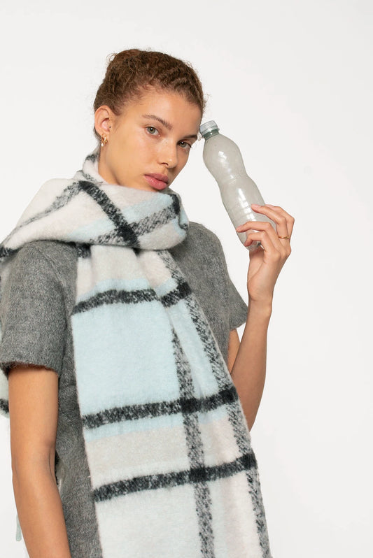 REplaid Oversized Recycled Bottle Scarf - Sky Blue & Black