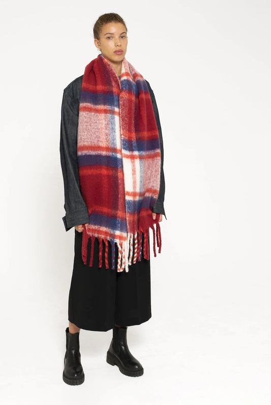 REplaid Oversized Recycled Bottle Scarf - Red & Navy