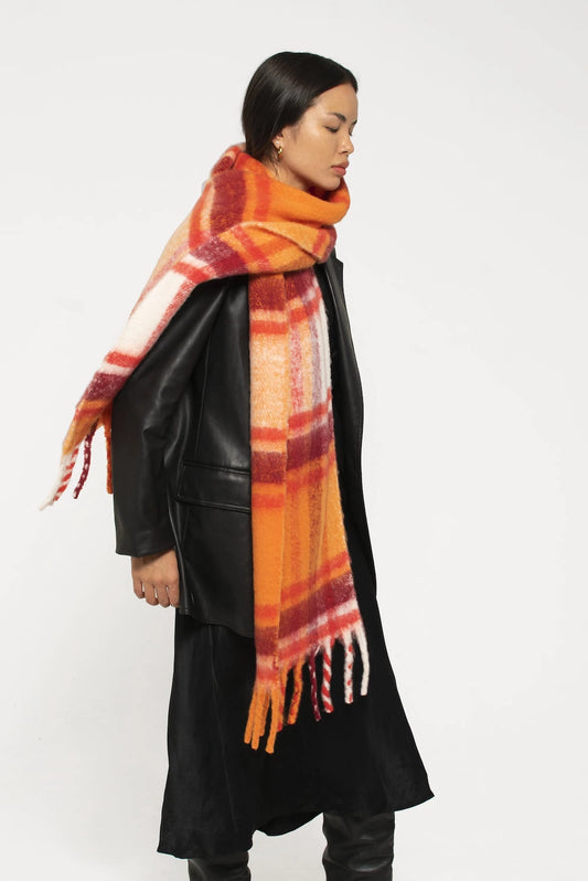 REplaid Oversized Recycled Bottle Scarf - Orange & Red